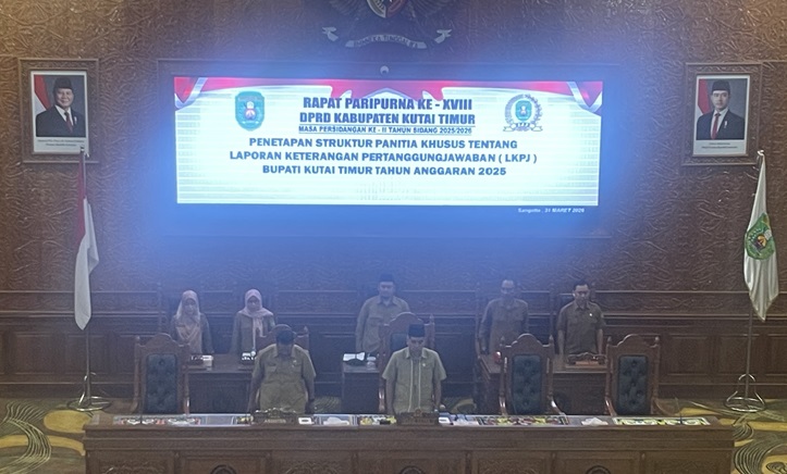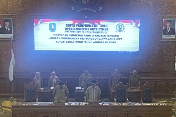 SANGATTA – DPRD Kabupaten Kutai Timur menetapkan struktur Panitia Khusus (Pansus) Laporan Keterangan Pertanggungjawaban (LKPJ) Bupati Kutai Timur Tahun Anggaran 2025 dalam Rapat Paripurna yang digelar, Selasa (31/3/2026). Rapat dipimpin Wakil Ketua I DPRD Kutim, Sayid Anjas, dan dihadiri 23 anggota DPRD, Sekretaris DPRD Jainuddin, serta jajaran pejabat di lingkungan Sekretariat DPRD. Penetapan pansus ini…