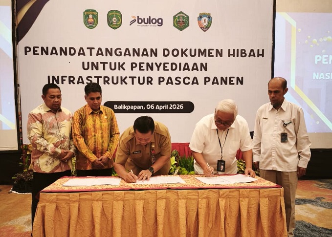 BALIKPAPAN – Sektor pertanian di Kabupaten Kutai Timur (Kutim) mendapat dukungan besar melalui penguatan infrastruktur pascapanen modern. Langkah strategis ini ditandai dengan penandatanganan Dokumen Naskah Perjanjian Hibah Daerah (NPHD) antara Pemerintah Kabupaten Kutai Timur dengan Perum BULOG di Hotel Novotel Balikpapan, Senin (6/4/2026). Prosesi penandatanganan dilakukan oleh Asisten Perekonomian dan Pembangunan (Ekbang) Setkab Kutim, Noviari…