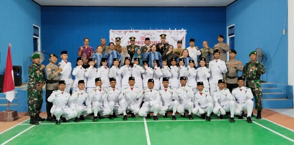 KONGBENG – Camat Kombeng Jumran, SE., M.Si resmi mengukuhkan 26 pelajar terbaik sebagai anggota Pasukan Pengibar Bendera (Paskibra) Kecamatan Kombeng tahun 2025. Prosesi pengukuhan berlangsung khidmat di GSG Maega Mulya, Sabtu malam (16/8/2025).