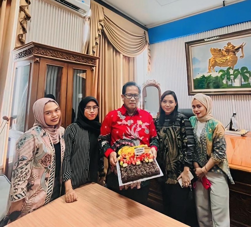 Kejutan tak berhenti di ruang rapat. Usai pertemuan, suasana haru kembali muncul di ruang kerja Masdari Kidang. Mengenakan batik merah, ia tidak menyangka staf sekretariat—terutama porter—telah menyiapkan kue ulang tahun sederhana lengkap dengan lilin. Begitu ia memasuki ruangan, ucapan selamat ulang tahun langsung menggema, diiringi lagu dan tepuk tangan hangat.