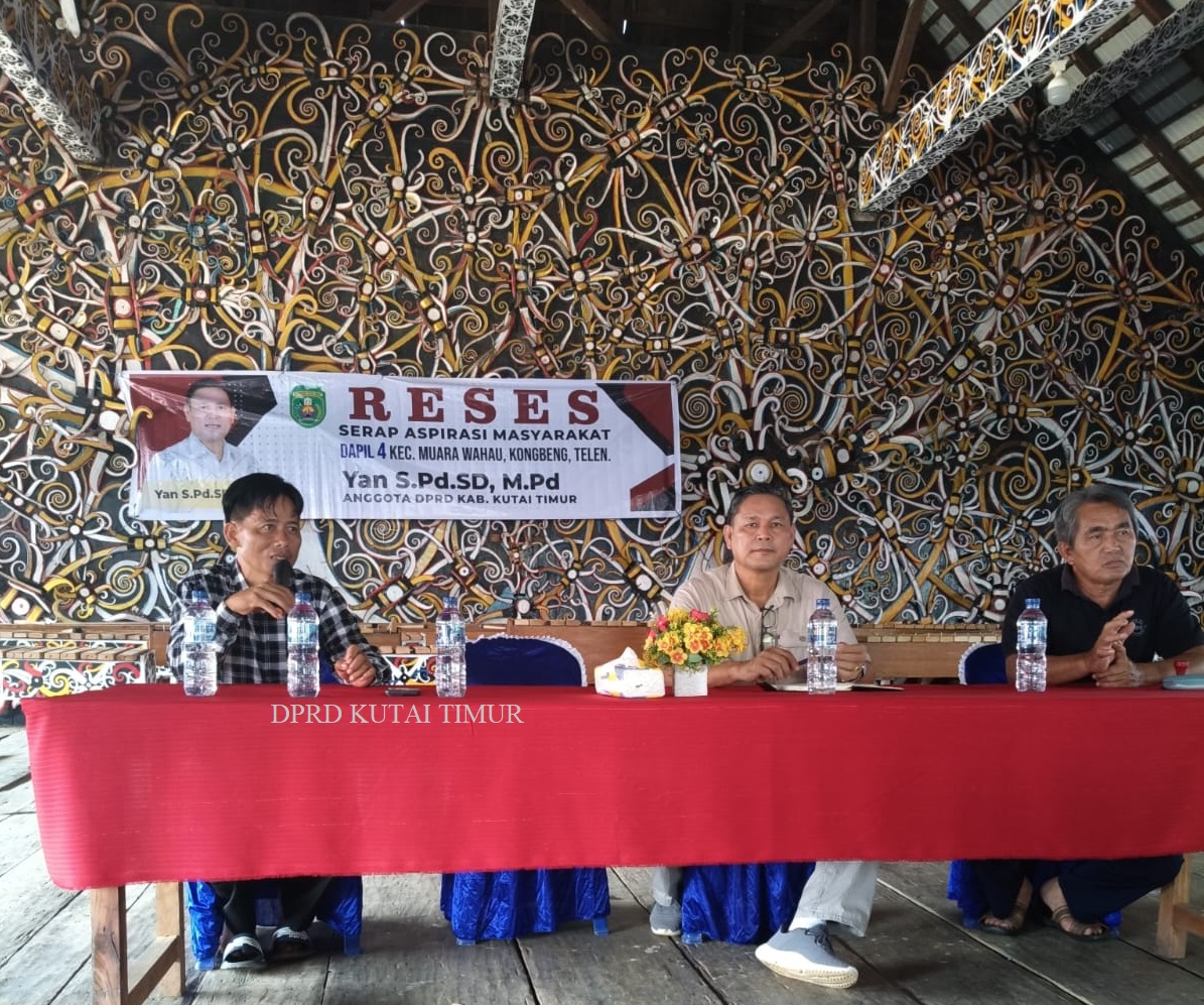 TELEN – Bahagia dapat kembali ke tanah kelahirannya, anggota DPRD Kutai Timur Yan, S.Pd., SD., M.Si memulai masa reses di Dapil 4 yang berlangsung sejak 28 November hingga 2 Desember 2025. Wilayah reses meliputi Kecamatan Kombeng, Muara Wahau, dan Telen, dengan kunjungan di Long Noran Kecamatan Telen yang mayoritas dihuni masyarakat Suku Dayak. Pertemuan berlangsung di Balai Adat Long Noran dengan suasana penuh keakraban dan kekeluargaan.